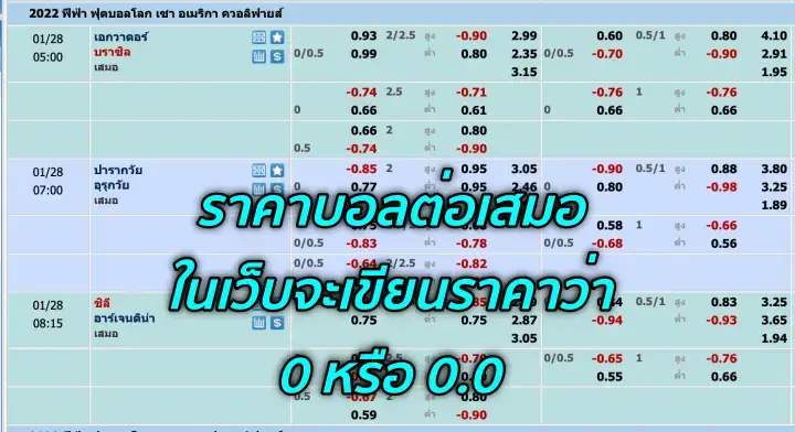 ราคาบอลต่อเสมอ
