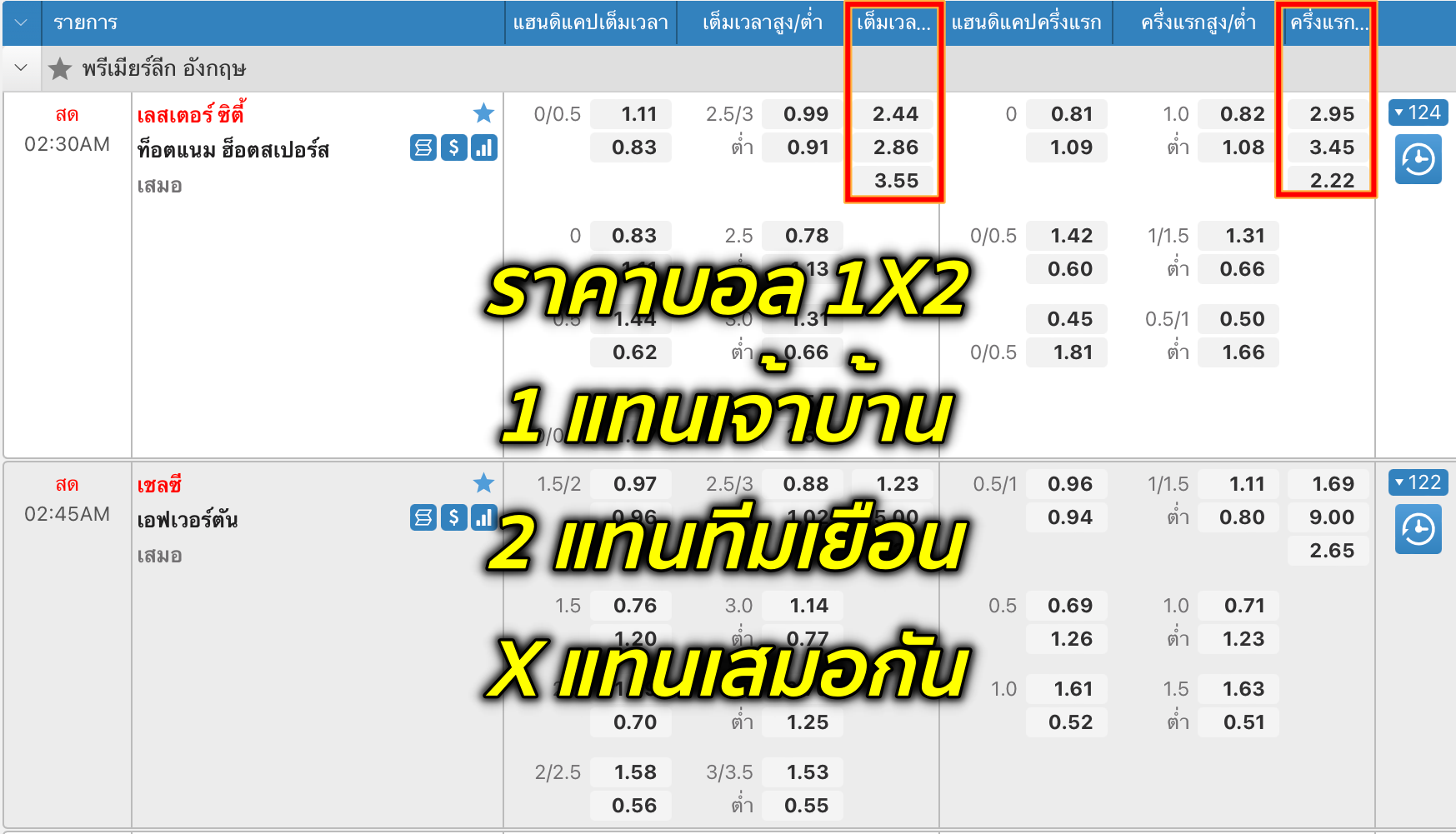 ราคาบอลที่คนสงสัยมากที่สุดอีกราคา มันก็คือราคาบอล 1X2 ที่บางคนไม่รู้ว่ามันคือราคาอะไร เล่นยังไง ซึ่งเราเลยจะมาบอกกันให้รู้ว่าเอาไว้ ราคานี้มันเล่นยังไง ต้องดูราคาต่อรองหรือไม่ แล้วท่านจะไม่พลาดกับการแทงบอลที่จะทำกำไรให้ท่านได้ง่ายอีกแบบหนึ่ง