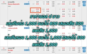 - เล่นทีมรอง 1,000 ชนะได้ 1,000 เสมอได้ 500 แพ้เสีย 1,000