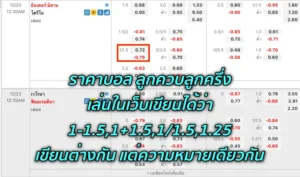 โดยใครที่เล่นทีมต่อต้องเชียรืให้ชนะด้วยสกอร์ที่มีผต่าง 2 ลูก หรือมากกว่านั้น ถ้าชนะแค่ลูกเดียวจะเสียเงินครึ่งนึง เพราะว่ามันมีคำว่า ควบ อยู่ในราคาด้วย ถ้ามีคำว่า ควบ อยู่ มันจะมีการได้ครึ่งเสียครึ่งอยู่ด้วย