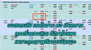 สำหรับคนที่คิดอยากจะเล่นในราคานี้ มันอยู่ 2 ทาง ที่จะทำให้ท่านชนะ อย่างแรกเลย ดูว่าค่าน้ำทีมต่อเป็นยังไง ดูค่าน้ำทีม ออสเตรเลีย ได้ค่าน้ำที่ 0.62 เท่านั้น ถือว่าได้น้อย แต่เรามั่นใจได้ว่าทีมต่อนั้น น่าจะชนะเกินแต้มต่อ เพราะเว็บจ่ายให้น้อยเหลือเกิน